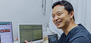 出勤後、まずは待合室の清掃やパソコンの立ち上げなどの、オープニング作業を行います。開院前には全体ミーティングでその日の検査と診療に関する情報共有をします。